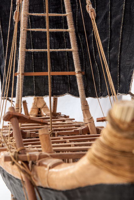 Also on show will be one of the bitumen fragments found in Oman which provide direct evidence of early Bronze Age boatbuilding in Arabia: on one side, impressions of reeds, on the opposite, the occasional barnacle.