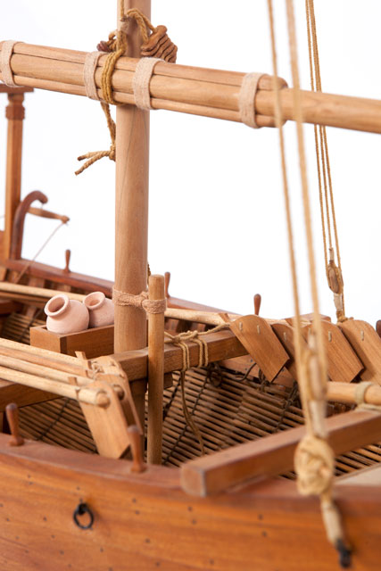 Each of the model ships is crafted with extraordinary precision and detail, but perhaps none more so than the Jewel of Muscat. Stitch for stitch and plank for plank, she recreates to scale the full-size ship built in Oman four years ago, before her epic sailing voyage in 2010 from Muscat to Singapore.