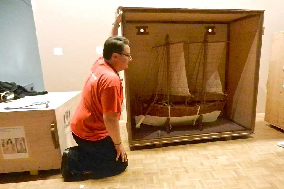 Among the first items to be unpacked was a finely detailed scale model of the Jewel of Muscat – the reconstruction of a 9th century Arab trading ship built in Oman in 2009.